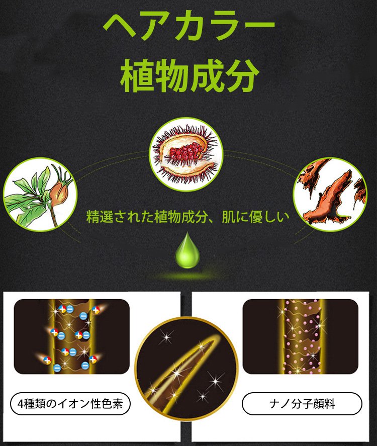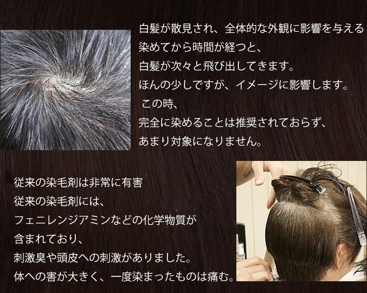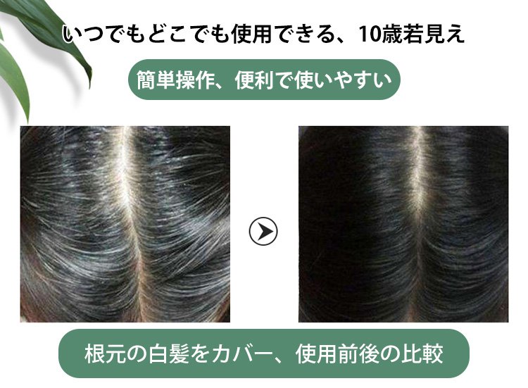 【白髪隠し】使い方簡単、サラサラ、髪に優しい、植物成分、コンパクト